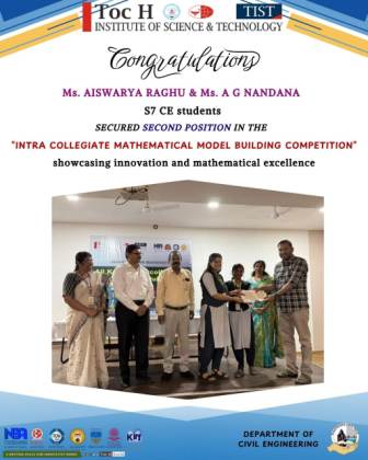 Students of S7 Civil Engineering Department have proudly secured the Second Position in the “Intra-Collegiate Mathematical Model Building Competition.”