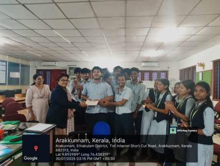 A hands-on Arduino workshop was held on July 31st, 2025, for S5 and S7 EEE students at TIST, led by Ms.Aeliswa, Assistant Professor, Department of EEE. The session introduced students to Arduino programming and real-time applications. A project competition followed, where students showcased innovative prototypes. The best team received a cash prize for their creativity and technical skills. The workshop enhanced students’ understanding of microcontroller-based systems, coding, and sensor integration—encouraging practical learning and innovation in line with the department’s vision.