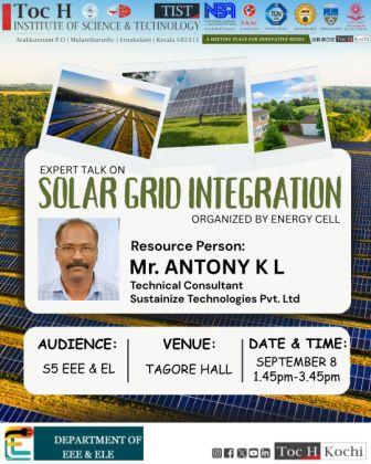 The Energy Cell of the Department of EEE at Toc H Institute of Science and Technology organized an expert talk on “Solar Grid Integration” on September 8, 2025 at Tagore Hall.