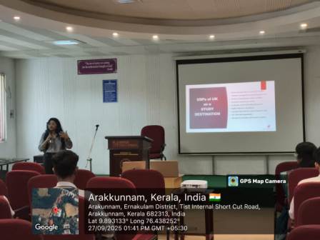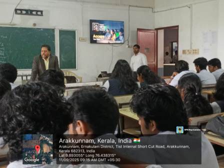 The Department of Electrical and Electronics Engineering of TIST organized an orientation session on opportunities offered for higher studies abroad conducted by the German Academy of Digital Education on September 11, 2025 . The session was led by Mr. Vikram Singh, Consultant,DAAB,who introduced the opportunities offered by the academy for students aspiring to pursue higher studies in Germany after B.Tech. He explained the support and guidance provided by the academy to help students prepare for academic and professional pathways abroad. The program was attended by S3 EEE students, giving them valuable insights into international education prospects and career development.
