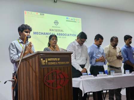 The Mechanical Engineering Association for the academic year 2025–26 was formally inaugurated on 17th October 2025 at Ramanujan Hall, Toc H Institute of Science and Technology. The ceremony commenced at 10:30 AM with a solemn invocation, followed by a warm welcome address delivered by Dr. Rajesh Kocheril, Head of the Department of Mechanical Engineering. Mr. Kurian Thomas, Manager of Toc H Public School Society, delivered the presidential address, setting the tone for the event with his inspiring words. The inauguration was symbolically marked by the lighting of the lamp, signifying the beginning of a new chapter of student-led initiatives and technical engagement.