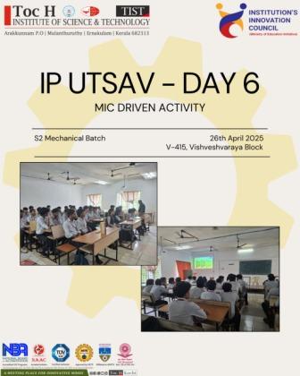 Department of Mechanical Engineering in collaboration with Institution’s Innovation Council (IIC) successfully conducted Day 6 of the IP Utsav on April 26, 2025. The MIC-driven activity, titled “Patent to Product,” brought together the S2 Mechanical Engineering batch for an enlightening session at Vishveshvaraya Block, focusing on the critical journey from intellectual property protection to market-ready innovation.