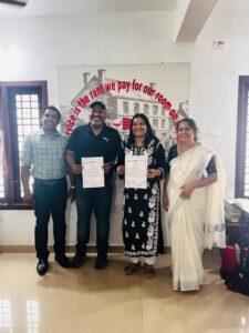 The function commenced with a warm welcome address delivered by Mr. Santhosh, who highlighted the objectives and achievements of the event. This was followed by a brief presentation on the activities and sessions conducted during the course by Dr. Reena Madhu and Dr. Fabil Varghese, course coordinators. They encouraged the participants to carry forward the knowledge and skills they had acquired and also emphasized the importance of updating their