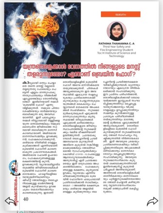 Fathima Thamanna C. A., a third-year Safety and Fire Engineering student at Toc H Institute of Science and Technology, contributed an insightful article titled “Does your mind tire faster than machines? What is brain fog?” to Surakshajalakam, the official safety awareness souvenir published by the Department of Factories and Boilers, Kerala usually around National Safety Day / Safety Week events.