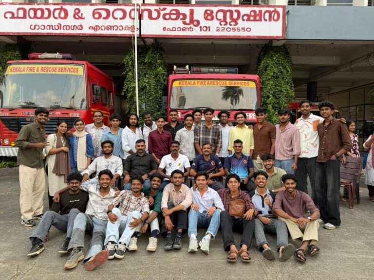 Department of Safety & Fire Engg. in association with Kerala Fire & Rescue Department conducted a mock drill and safety training session for the students and staff of the college on 24 June 2022. Various fire fighting and rescue equipment and accessories were displayed and a mock rescue drill operation was exhibited. Mr. Sajeevan, Station Officer, Piravom led the session.